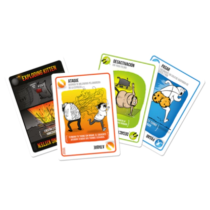 En Exploding Kittens prueba tu suerte al puro estilo de la ruleta rusa. Hay varios gatos explosivos escondidos en la baraja los cuales deberás evitar si tomas un gato explosivo, pues ¡Explotas!.